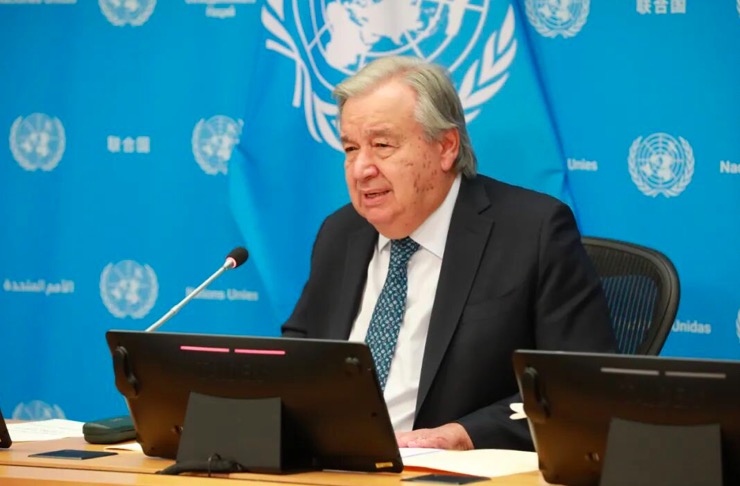 2025年9月16日,在位于纽约的联合国总部,联合国秘书长古特雷斯在新闻发布会上讲话。新华社记者谢锷摄