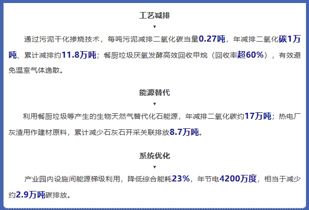 循环经济产业园通过系统集成和工艺革新,大幅降低了固废处理全过程的碳排放,累计减排成果惊人: