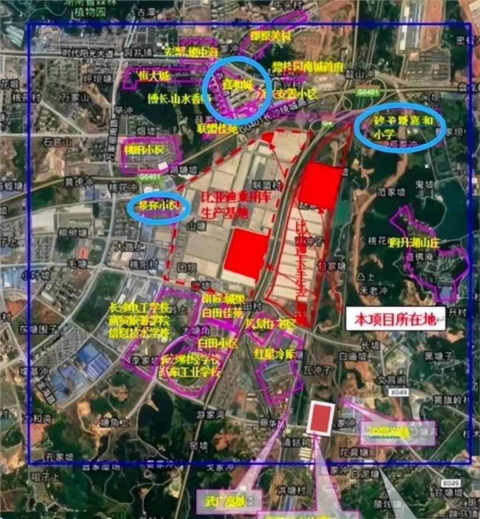 同时根据国家汽车制造厂卫生防护距离标准,规定工厂与居住区的距离从300米至500米不等。而比亚迪工厂距离有些小区甚至只有40米、50米,距嘉和学校仅有300米。