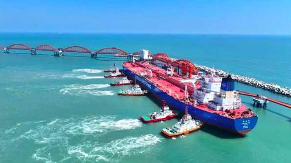 “新龙洋”号油轮靠泊广东石化公司原油码头。受访者供图