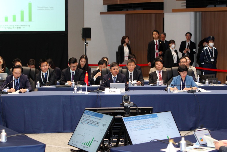 日本、韩国分别作了主旨发言。日方介绍了日本在应对气候变化、生物多样性保护、循环经济、海洋塑料垃圾、大气污染防治等方面工作进展及举措。韩方介绍了韩国在碳中和、大气污染防治、水环境治理、生物多样性保护、循环经济等方面政策及举措。