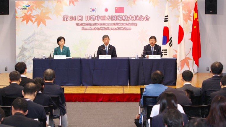 11月3日至4日,第二十四次中日韩环境部长会议在日本名古屋市举行。中国生态环境部部长黄润秋、日本环境大臣伊藤信太郎、韩国环境部部长韩和真分别率团出席会议,交流本国环境政策及最新进展,并就共同关心的区域和全球环境议题交换意见。会议审议了《中日韩环境合作联合行动计划(2021-2025)》实施情况,通过并共同签署《第二十四次中日韩环境部长会议联合公报》。