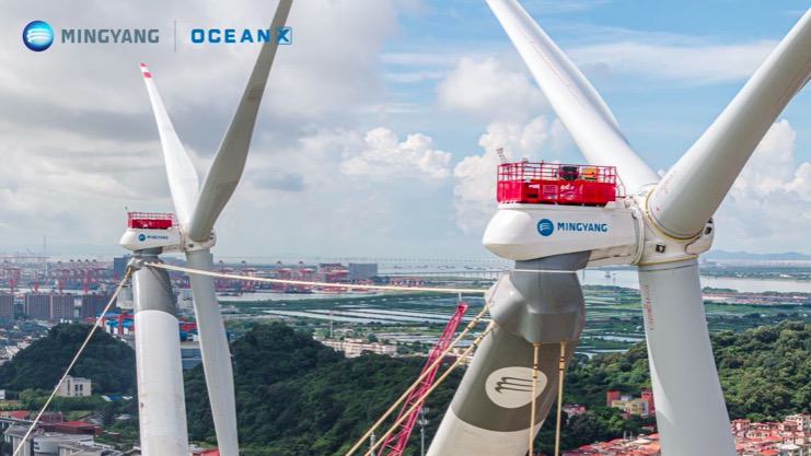 “明阳天成号”为明阳集团自主研制,两座塔筒呈“V”字形排列、搭载两台8.3兆瓦海上风机,总容量达到16.6兆瓦,可应用于水深35米以上的全球广泛海域。其叶轮最高处达219米,空中最大宽度约为369米。整座风电平台排水总量约1.5万吨,整体拖航设计吃水5.5米。据测算,“明阳天成号”正式投运后,平均每年可发电约5400万度,能满足3万户三口之家一年的日常用电。