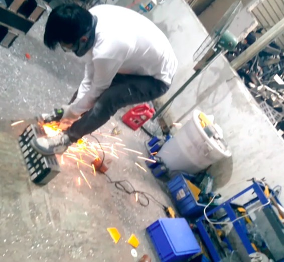 对于这样的环境,孟姓工厂负责人笑称,他们这里还是干净的,有些车间根本进不去,干活时“都是黑的”。该“打粉厂”另一位负责人表示,他们最近刚处理了一批汽车底盘电池,拉来的电池可以先进行检测,若还可以用就当好的卖,若不能用了就上机器粉碎打粉。