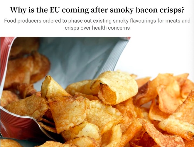 克洛斯卡举例说明,去年有消息称,欧盟要禁止所有“培根口味”的薯片。但事实上,欧盟各国政府出于对可能增加癌症风险的担忧,同意逐步淘汰8种“烟熏口味”的薯片。