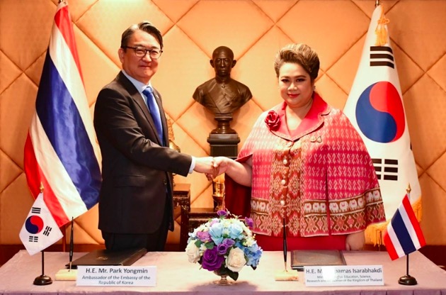 据韩国外交部表示,《大韩民国政府和泰国政府关于和平利用原子能合作的协定》签署仪式在曼谷举行,韩国驻泰国大使朴容民与泰国高等教育科学研究与创新部部长素帕玛·伊萨拉帕克迪正式签署了该协定。